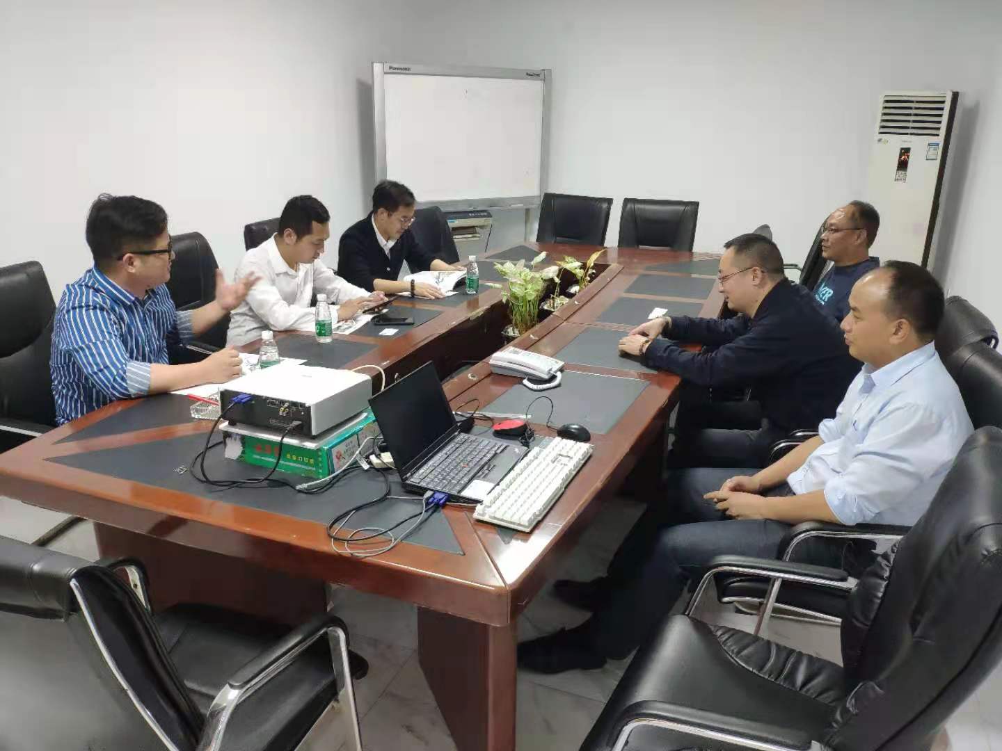 車間參觀完畢,隨后進(jìn)如電梯上辦公區(qū),穿過辦公區(qū)來到大航會議室。